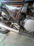 当時と変わらないものは、マフラーとホイル、Rブレーキ、ライトくらい?