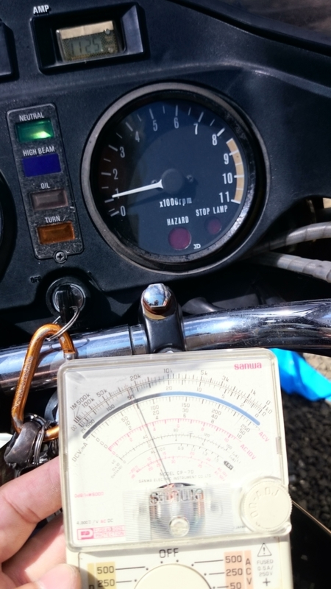 ただし、ACCから計測すると1Vくらい低い表示になるようです。