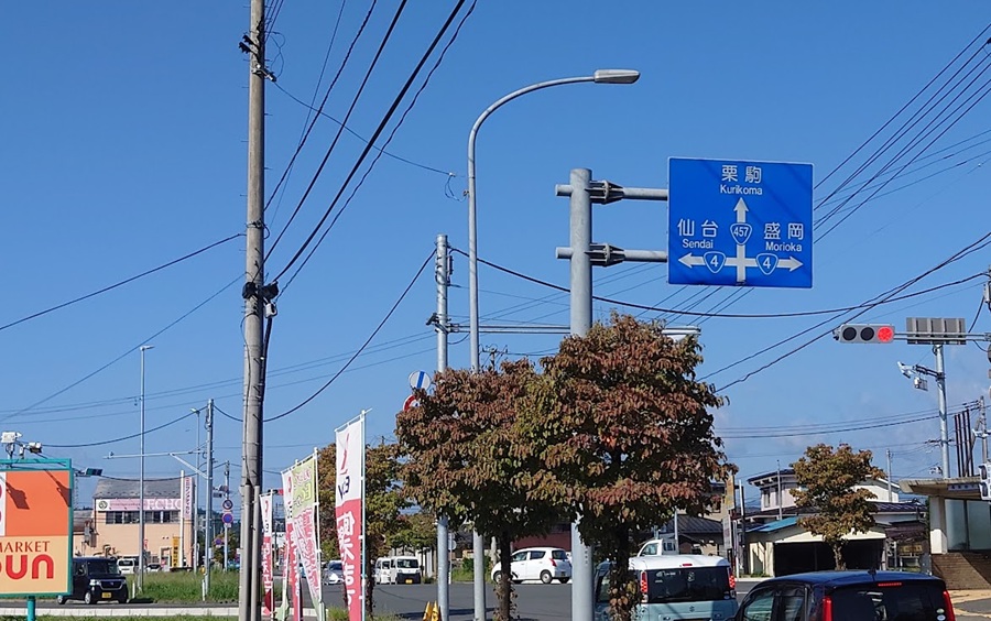 国道457号線は岩手県一関を起点に、最後は白石市で終了する。
