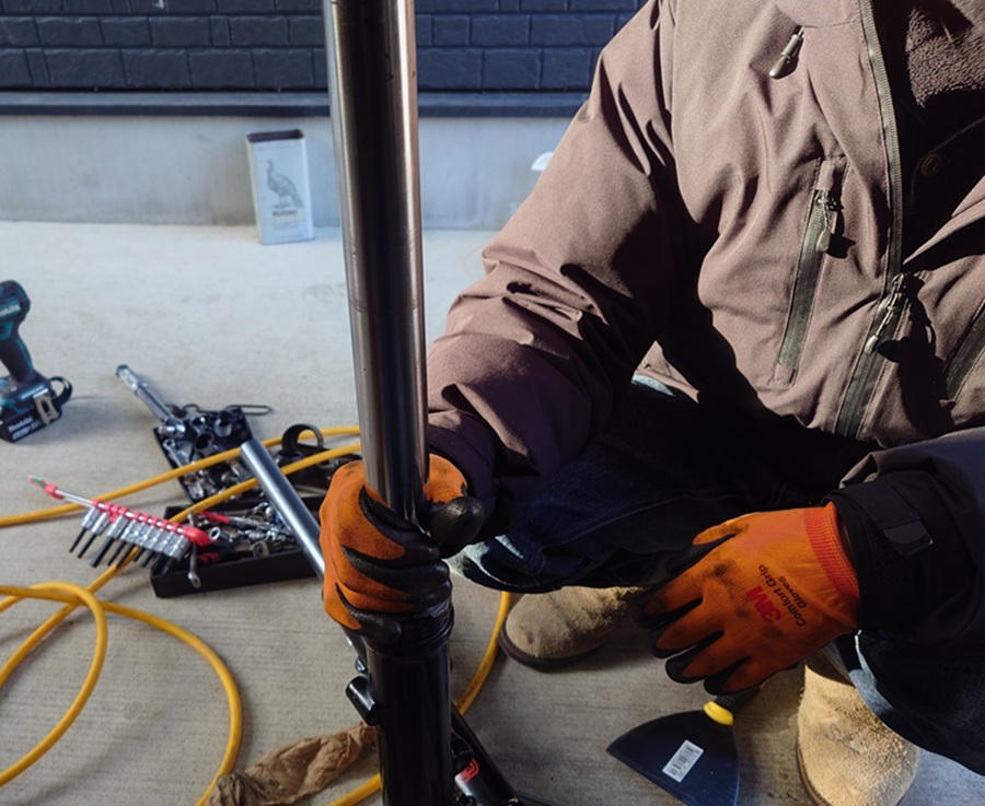 シールを圧入する際、スライドハンマーを使って叩き入れる。