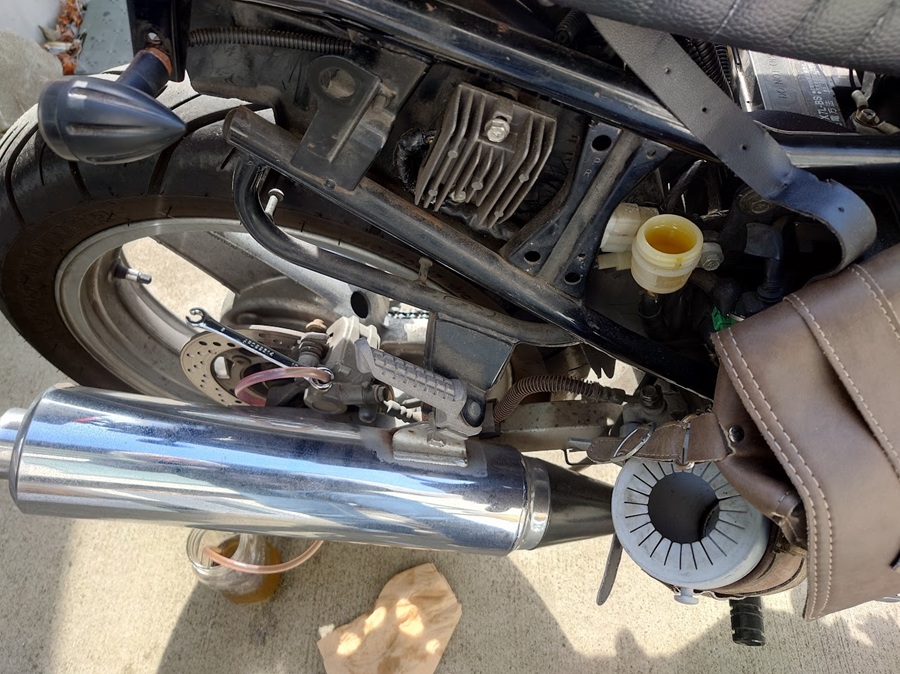 一方、純正キャリパー+エストレヤのマスター組み合わせのリア。